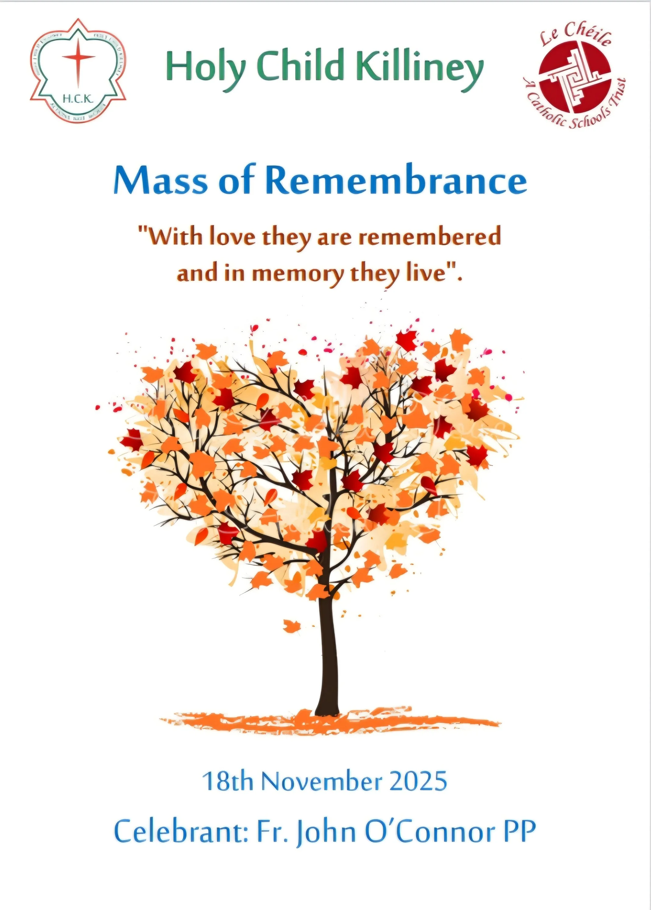 On Tuesday 18th of November, the Holy Child Killiney annual November Remembrance Mass was celebrated in our school Chapel. November is the month of Remembrance. It is the time of year when Christians everywhere gather in faith to pray for our beloved dead.
